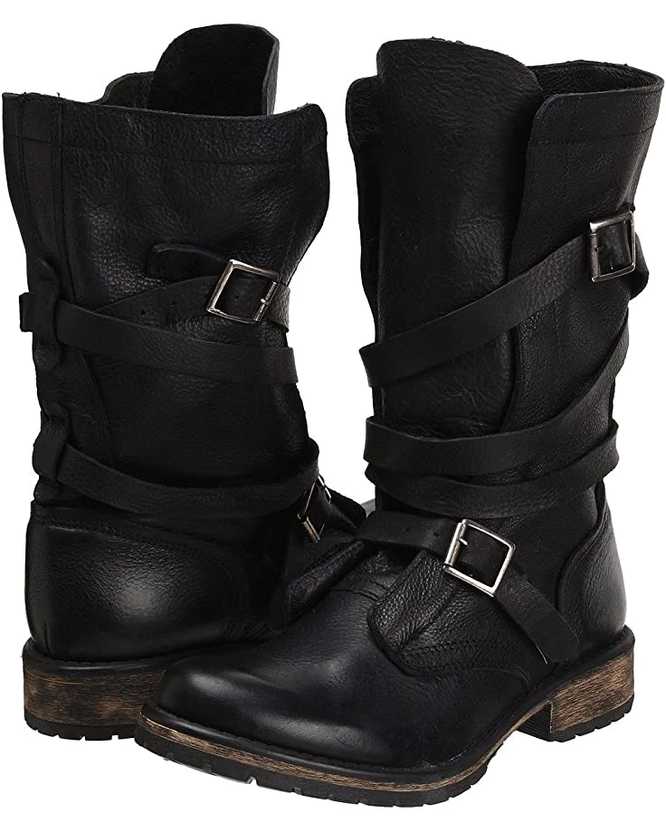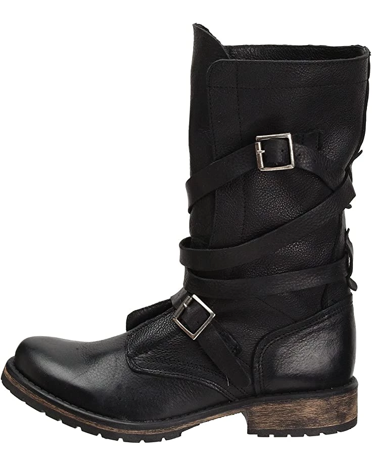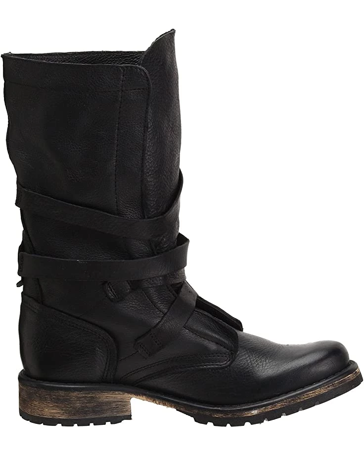 - With a leather upper, wraparound buckled straps along the shaft, a plain round toe, and a low block heel, the Steve Madden® Banddit Boot will lend a rustic aesthetic to your trendsetting style.