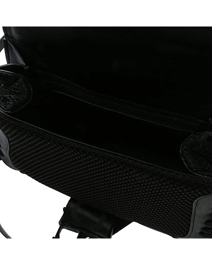 - Flap closure secured with quick-release buckle.